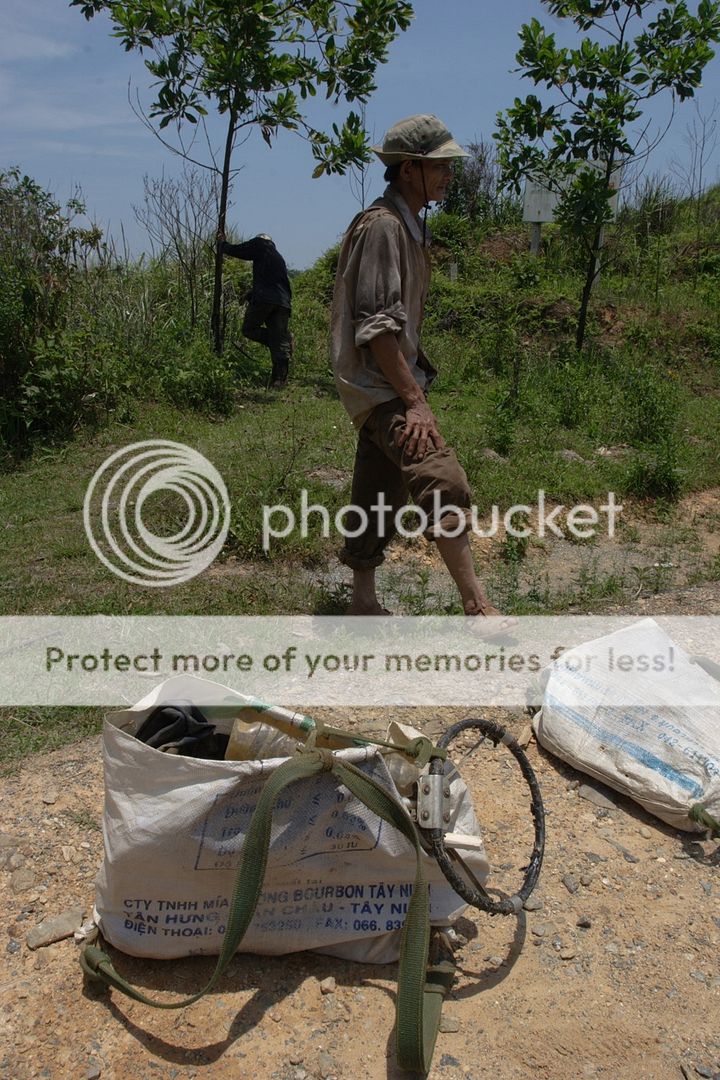 Người dân đang đi rà miểng bom trên đường lên Dốc Mèo - nơi có những trận đánh khốc liệt năm xưa. Những nơi chiến trường xưa càng nóng, kết quả "thu hoạch" cơm áo càng đỡ vã.