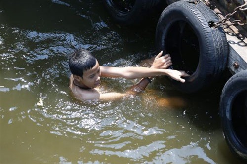 Nhiều trẻ em phải tắm rửa trong ao tù đọng, rất dễ mắc bệnh sốt rét, bệnh ngoài da.