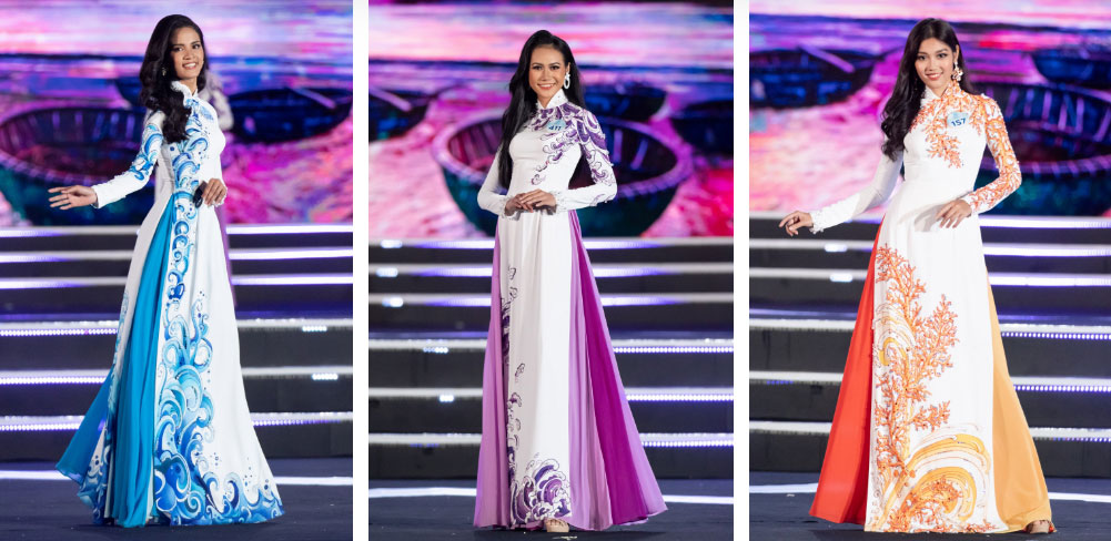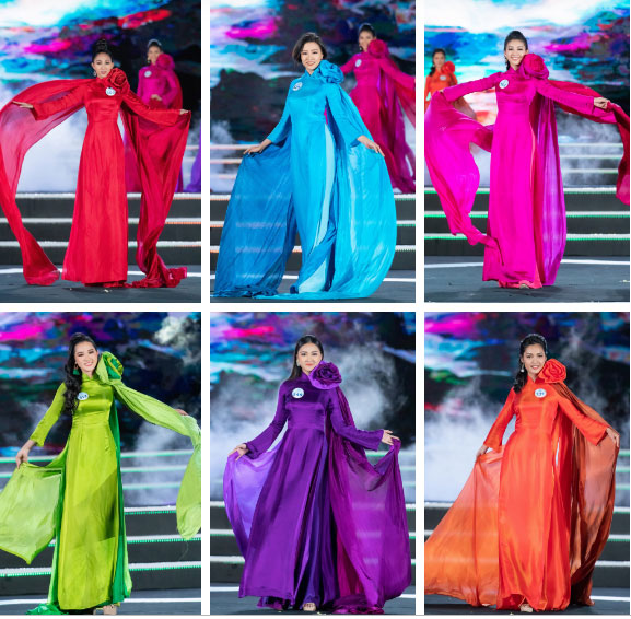 Tiết mục trình diễn áo dài của các thí sinh còn khiến công chúng rối ren bởi đầu cuối không tương thông, mỗi phần một kiểu: có cô thì hết mức giản dị, cô thì lại "giật giũ" luôn cả phần người khác. Đáng nhớ nhất là gần chục cô đều phải ướm lên mình những chiếc áo dài như được copy-paste ra các mã màu khác nhau, cô nào cô nấy đều phải bon chen khoe sắc với một đóa hoa khổng lồ liền kề chiếc cô. Không hiểu các cô là nhân vật chính hay bông hoa mới đáng tiêu điểm đây?