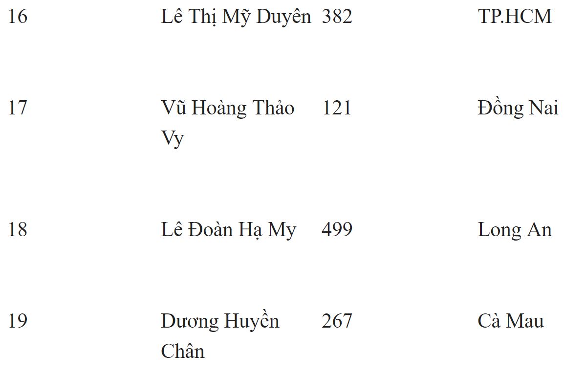 Danh sách 19 thí sinh bước vào đêm thi Chung kết.