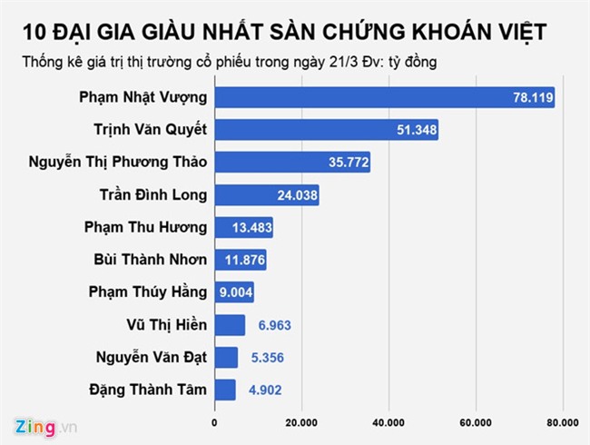 Đóng góp vào đà tăng mạnh của VN-Index chính là đà tăng giá của cổ phiếu các doanh nghiệp lớn bao gồm nhiều doanh nghiệp của các vị đại gia, tỷ phú USD tại Việt Nam hiện nay.