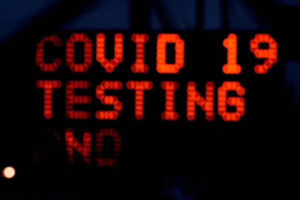 Một biển cảnh báo nơi test COVID-19 trên đường cao tốc Indianapolis khì biến thể Omicron tiếp tục lây lan ở Indianapolis, Indiana, Hoa Kỳ. Ngày 29/12/2021. Ảnh: Reuters