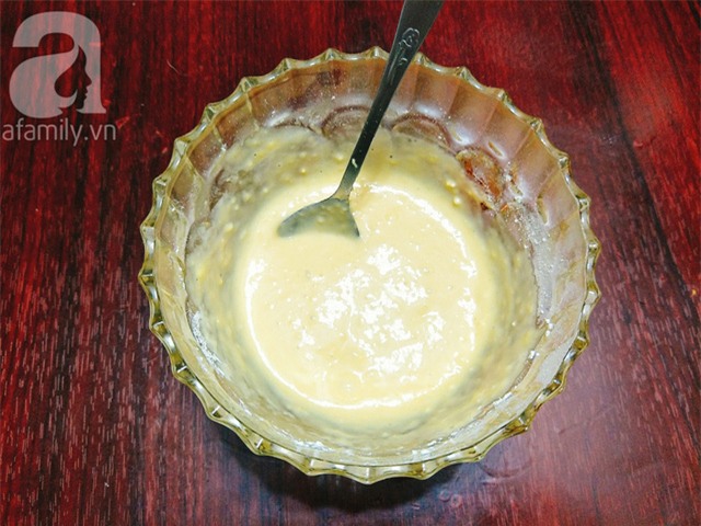 Bột mì, bột chiên giòn, xíu muối, trứng gà, sữa đặc cho vào 1 cái bát và thêm 1 chút nước sau đó khuấy đều hỗn hợp cho bột tan hết, ta được hỗn hợp bột ướt.