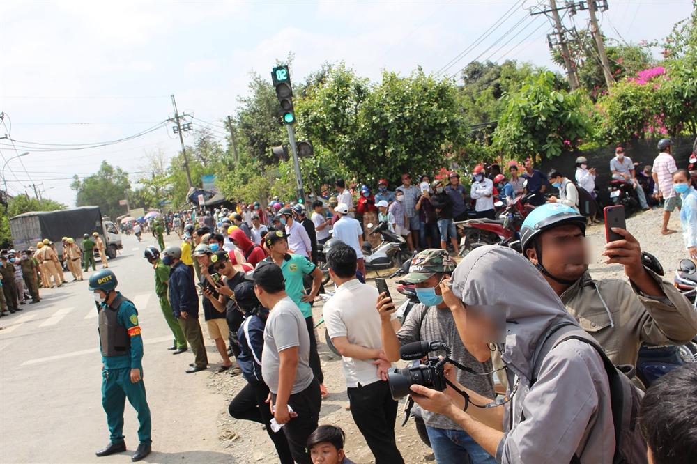 Lực lượng công an địa phương cũng túc trực ở đây để đảm bảo an ninh trật tự, phòng ngừa các đối tượng hiếu kỳ, quá khích đến gây rối.