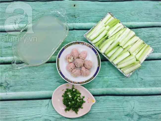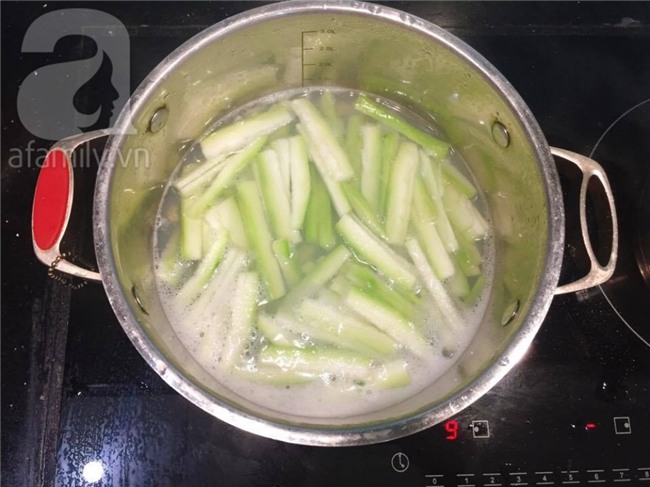 Bầu gọt vỏ, bỏ ruột, thái miếng mỏng, ngắn.
