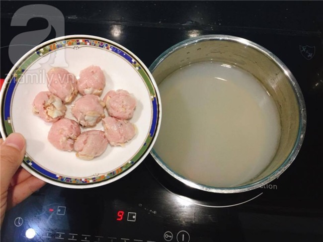 Đun sôi lại nước luộc ngao, cho viên mọc ngao vào đun chín.