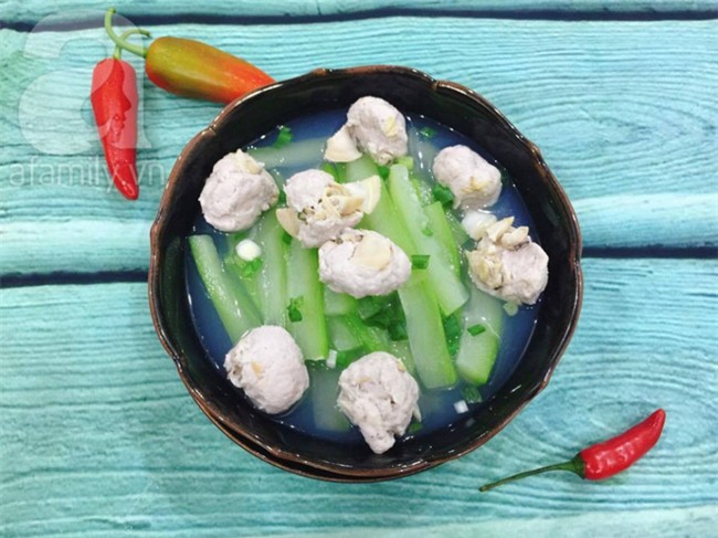 Khi mọc nổi lên cho tiếp bầu, đảo đều, đun sôi thêm vài phút, thêm hạt nêm hoặc gia vị cho nước canh vừa ăn. Cho hành và gừng. Tắt bếp, múc ra bát.