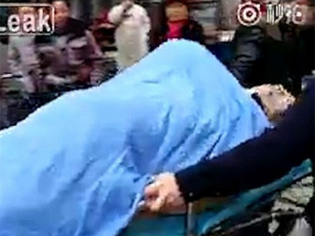 Vụ việc này xảy ra ở Trung Quốc cách đây ít lâu. Bác sĩ chuyển thi thể người đàn ông xấu số trên cáng, trên đó là gái mại dâm không làm sao thoát ra được.