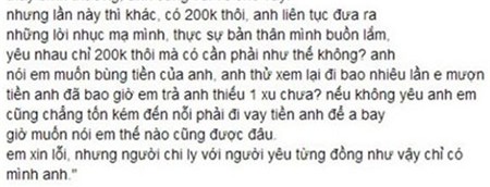 thế hết không ít tiền nên cuối cùng cô cũng phải vay người yêu. Tuy