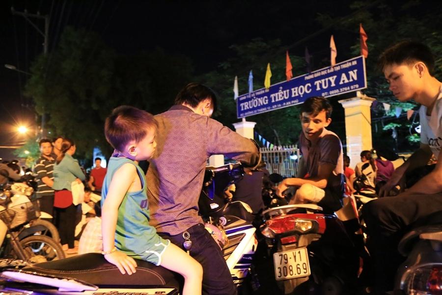 Tuy nhiên, sau nhiều giờ chờ đợi, đến 1h sáng ngày 26/6, hàng trăm phụ huynh vẫn chưa được vào bên trong trưởng Tiểu học Tuy An để nộp hồ sơ. Ảnh: Văn Dũng