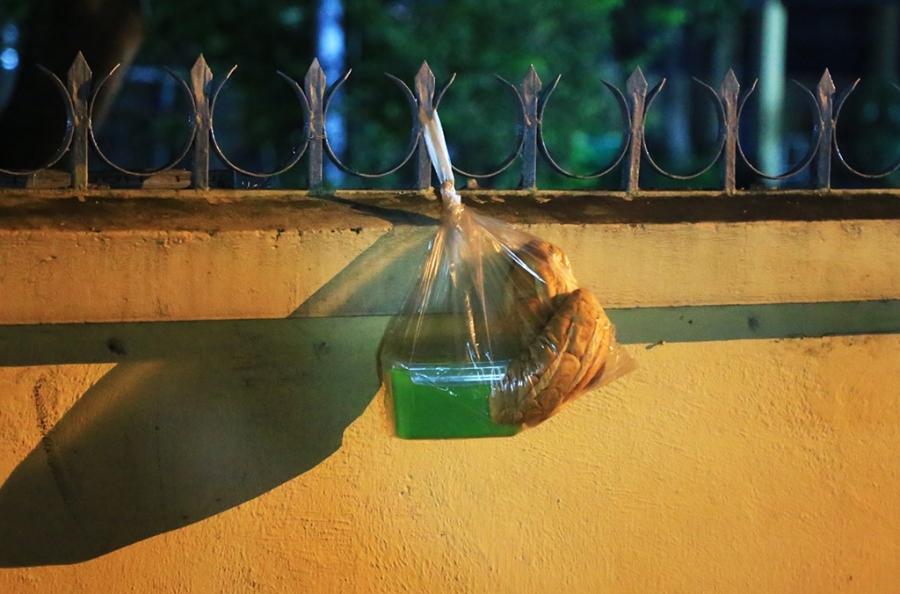Những ổ bánh mì được các phụ huynh mang theo để "chống đói" khi phải chờ đợi suốt đêm. Ảnh: Văn Dũng