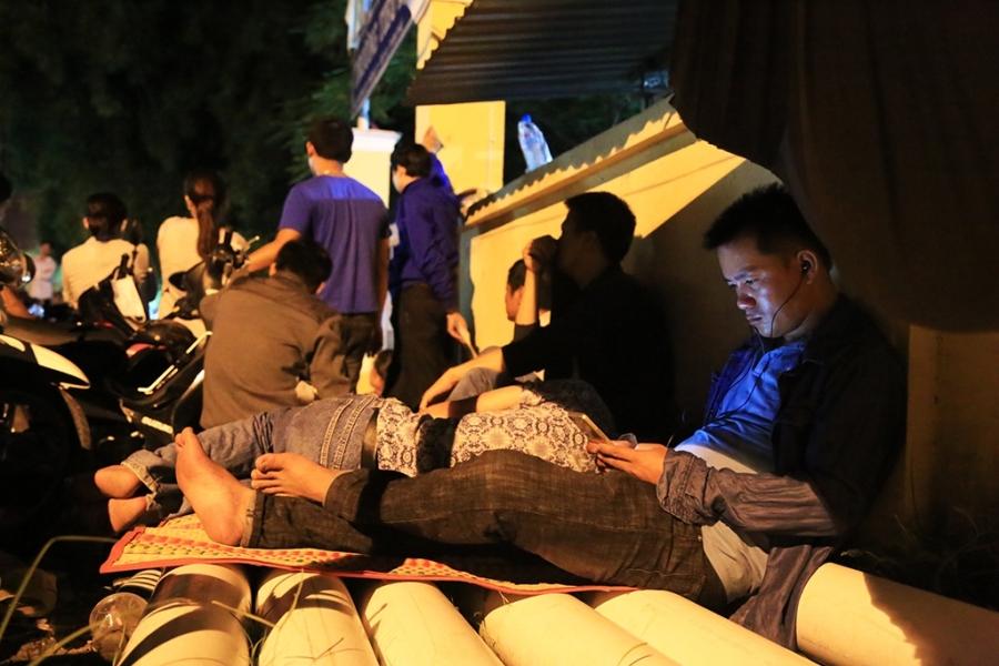 Nhiều phụ huynh tỏ ra lo lắng vì phải ngồi vạ vật xuyên đêm chờ nộp hồ sơ mà không biết chắc rằng con mình có được nhận vào trường hay không. Ảnh: Văn Dũng