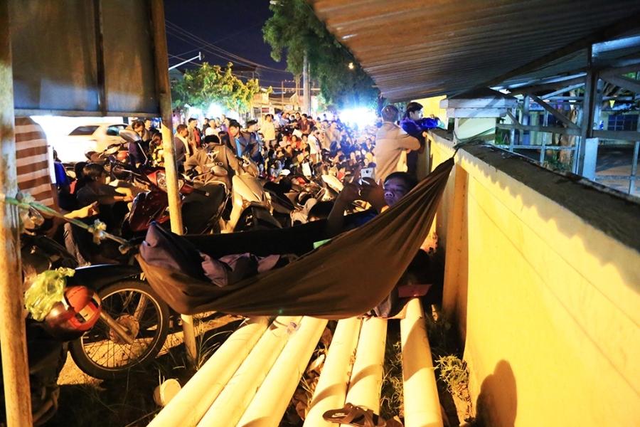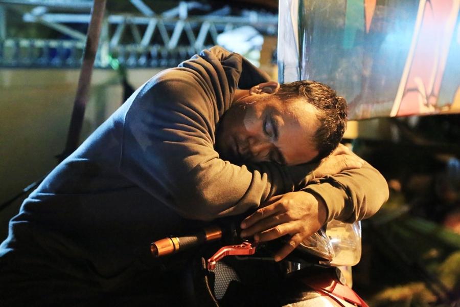 Nhiều phụ huynh mệt quá nên đã vội ngủ gục ngay trên xe máy trong khi chờ đợi. Ảnh: Văn Dũng