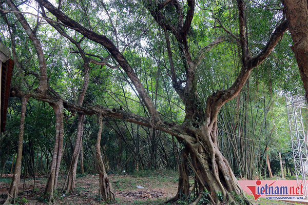 Cây đa có tuổi đời hàng trăm năm ngay bên khuôn viên đền.