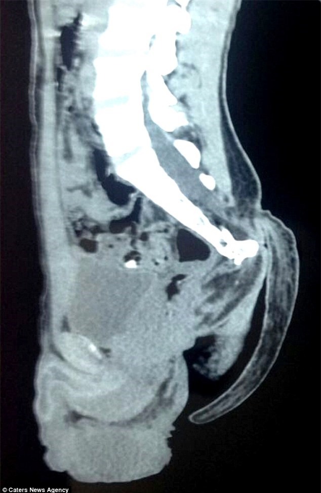 Hình ảnh chụp phim x-quang của bệnh nhân thể hiện rõ chiếc đuôi dài |