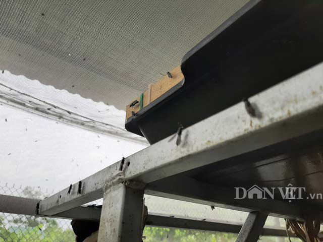 Chia sẻ về quy trình nuôi ruồi lính đen, ông Hùng vui vẻ cho hay: “Nuôi ruồi lính đen tuy khó nhưng rất đơn giản, chỉ cần một lồng lưới rộng khoảng 5m2, khay nhựa đựng kén, các bó thanh gỗ cho ruồi đẻ trứng và một bể xi măng nuôi ấu trùng là có thể nuôi được. Tuy nhiên, với khí hậu như miền Bắc có phần khắc nghiệt nên cần tạo độ ẩm thuận lợi, nhất là vào mùa đông, đây là thời điểm cần tạo được khí hậu thuận lợi để nuôi ruồi”.