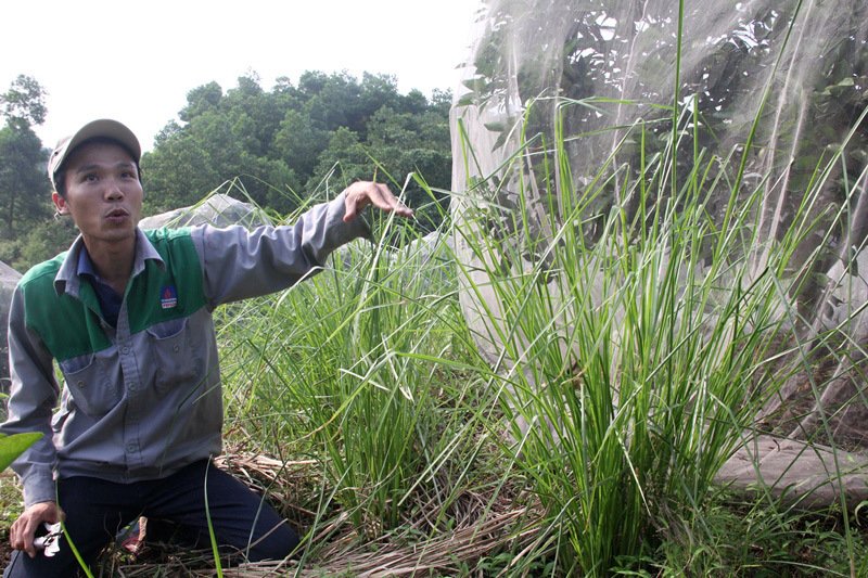 Mỗi đêm, ngoài mắc màn, ông Oánh còn bật điện cho trại cam để chống loài bướm đêm.