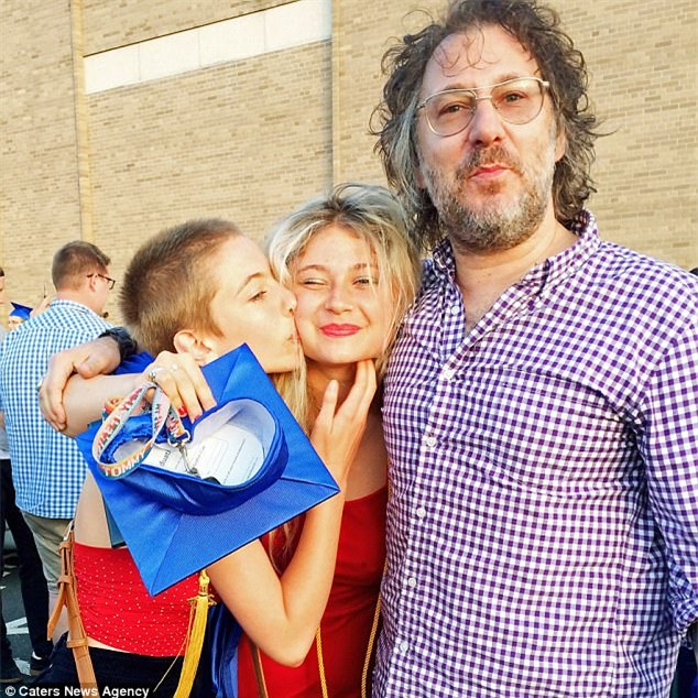 Adam Levy chụp hình cùng con gái trong lễ tốt nghiệp của cô bé
