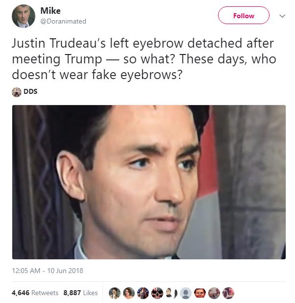Luôn là tâm điểm của mọi sự kiện, mới đây thủ tướng Canada vừa gây sốt khi trở thành ngôi sao của Hội nghị Thượng đỉnh G7. Tuy nhiên không phải vì những gì ông thể hiện trên cương vị nhà lãnh đạo mà vì một thứ oái ăm khác mang tên: lông mày giả.