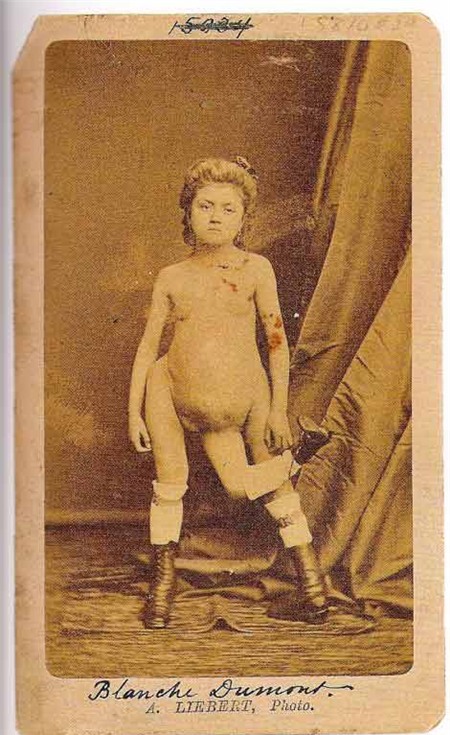 Trong một báo cáo chuyên đề về y học khá nổi tiếng mang tên Anomalies and Curiousities of Medicine công bố năm 1896 từng tiết lộ, Blanche có cấu tạo cơ thể hoàn toàn đặc biệt và độc đáo: Ở phần giữa hai chân của cô xuất hiện một chiếc chân thứ ba ở vùng cuối xương cụt, cô có hai vú "lép" ở vùng xương mu, tuy khá thô sơ nhưng có đầy đủ cả núm vú. Xương chậu lớn và chứa hai túi bàng quang, hai ruột và tất nhiên là cả hai âm đạo.