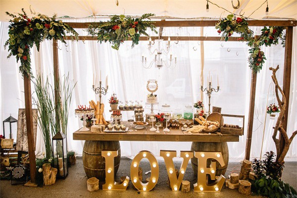 Tiệc đậm chất vintage với gỗ, rơm, cành cây