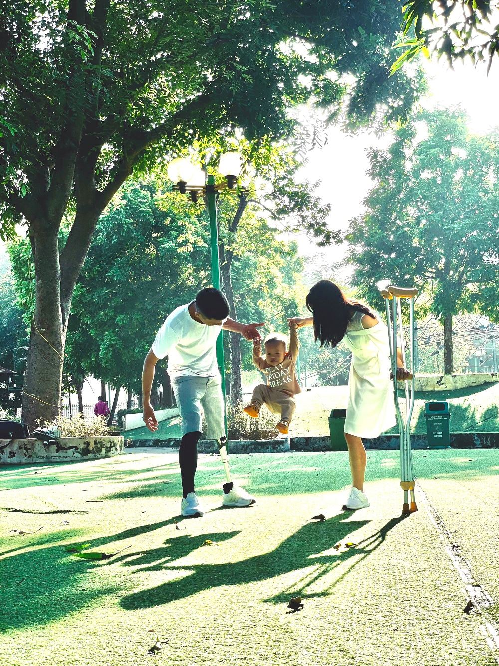 Ngày 7/11, cộng đồng mạng chuyền tay nhau bức ảnh đôi vợ chồng mỗi người chỉ có một chân đang dạy con tập đi. Sau khi xem bức ảnh, nhiều người đã phải thốt lên rằng tình yêu của họ thật đẹp và giàu nghị lực.