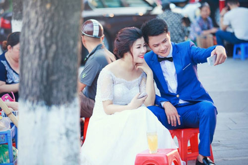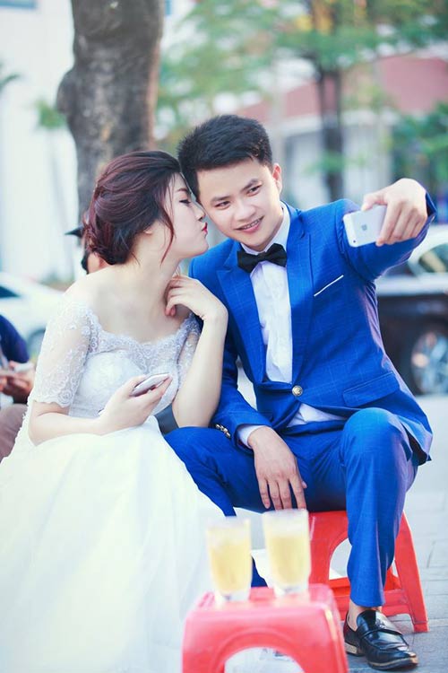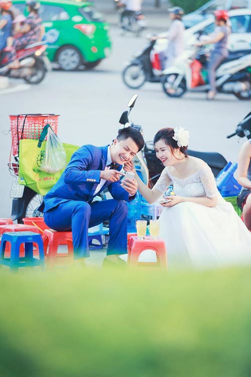 Mới đây, trên các diễn đàn dành cho giới trẻ đã đăng tải bộ ảnh cưới ấn tượng của cặp đôi khi đang ngồi uống trà đá đã thu hút sự chú ý của rất nhiều dân mạng.