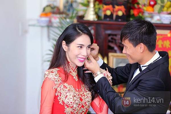 Lễ ăn hỏi của Công Vinh và Thủy Tiên diễn ra bí mật tháng 11/2011 tại quê nhà của nữ ca sĩ.