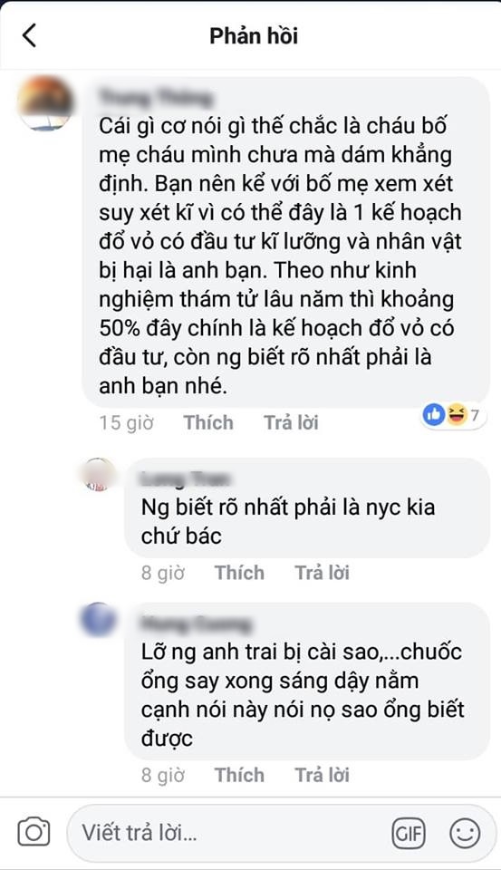 Bạn đọc có nickname Đ.Đ cũng đồng tình với quan điểm rằng: "Có chắc đứa bé đó là con của anh trai của em không. Thể loại con gái mà phá thai thì rất ghê gớm và tuyệt tình nhé. Mình từng trải nên chỉ biết hi vọng anh trai của em không bị lừa. Coi chừng đổ vỏ".