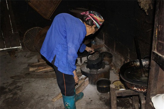 Mặc dù bị lưng còng, có khối u to trên lưng nhưng bà Siểu vẫn làm được những công việc nhà.