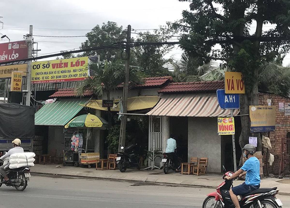 Phía trước hiện trường căn nhà có 9 người chết bí ẩn là quán cà phê võng nằm ngay mặt tiền quốc lộ 1, đoạn qua P.Trung Mỹ Tây, Q.12