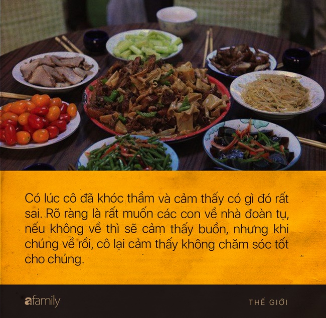 Bà Lưu mỗi ngày đều dậy như thường lệ, bắt đầu nấu nước làm cơm, nhưng khi các con về nhà, cô làm gì cũng đều lo lắng. Có lúc, bà sợ làm không đúng khẩu vị với các con thì chúng sẽ không ăn. Hay làm cơm xong, mà chúng vẫn chưa dậy nên phải gọi nhiều lần. Đến khi tất cả đều dậy thì cơm canh đã nguội lạnh. Người cuối cùng ăn xong thì cũng gần 11 giờ. Bữa sáng vừa kết thúc thì bữa trưa đã tới. Ngày cứ thể trôi qua, bà nói rằng không sợ phải vất vả nhưng sợ vì không thể phục vụ tốt, sợ các con không hài lòng.