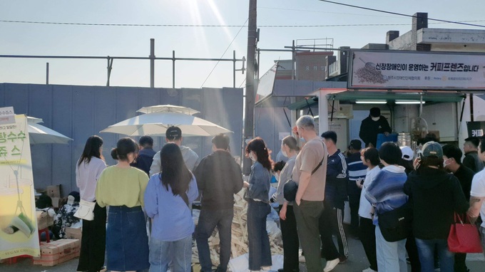 Hình ảnh hàng người Hàn Quốc đợi mua nước mía gây sốt cộng đồng mạng (Ảnh: NVCC).