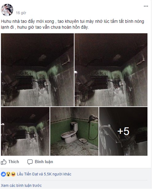 Chủ nhân đoạn chia sẻ cũng không quên khuyến cáo mọi người nên tắt bình nóng lạnh đi trước khi tắm để tránh xảy ra những hậu quả đáng tiếc như trên.