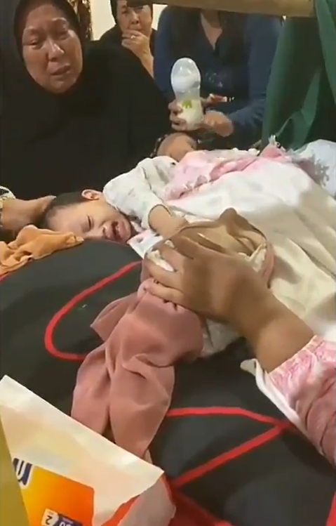Theo chia sẻ của người đăng clip, bé gái này vừa mới thức dậy, nhưng mẹ bé đã đi về bên kia thế giới. Ban đầu, mọi người đặt bé nằm cách xa thi thể của mẹ, nhưng bé cứ gào lên thảm thiết, tay cứ vươn ra cố chạm vào mặt mẹ. Mặc kệ bình sữa, mặc kệ mọi người xung quanh dỗ dành, trong mắt của bé, chỉ có mẹ và bé chỉ muốn mẹ mà thôi.