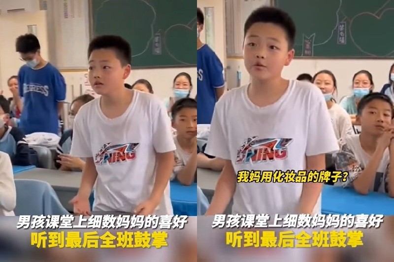 Hình ảnh cậu bé đứng lên thuyết minh vanh vách về mẹ được cư dân mạng Trung Quốc rần rần chia sẻ: