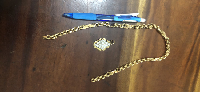 Sợi dây chuyền của nạn nhân bị tên Hiếu giật đứt. Ảnh: người dân cung cấp