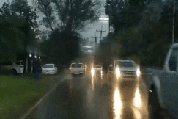 Trong clip, một người đàn ông đang cầm ô đi bộ dưới trời mưa để ra chỗ đỗ xe. Vài giây sau đó, một tia sét từ trên cao bất ngờ phóng xuống khiến người đàn ông giật mình, đánh rơi ô tô xuống đất. Điều đáng nói là tia sét chỉ cách cánh tay của người này vài centimet.