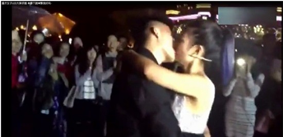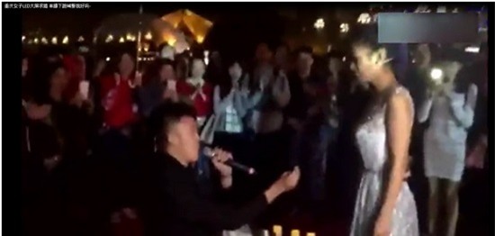 Tối 16/10 tại quảng trường của Trùng Khánh – Trung Quốc, một cô gái trong bộ váy cưới đã cầu hôn bạn trai mình trước sự chứng kiến của những người xung quanh.