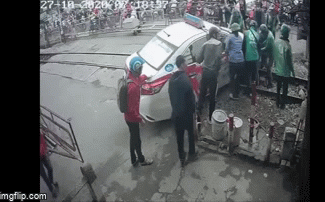 Tình huống cấp bách, các nhân viên đường sắt cùng nhiều người dân xung quanh đã rất nỗ lực phối hợp với tài xế để tìm cách đẩy chiếc taxi ra khỏi vị trí nguy hiểm.