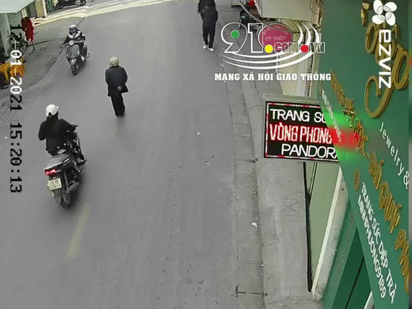 Ngay sau đó, một xe máy khác tiếp tục lao đến, người đàn ông điều khiển xe máy phanh gấp và ngã xòe xuống đường. Cụ bà bị chân của người này ngáng trúng, ngã khuỵu ngay xuống đường đầy đau đớn. Sau tai nạn, người đàn ông vội đỡ cụ bà dậy.