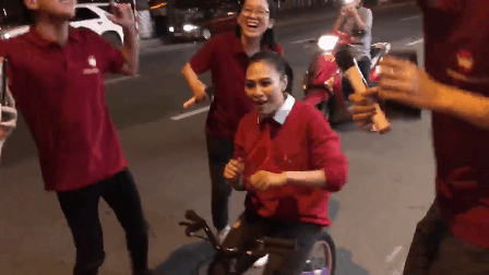 Mới đây, một đoạn clip ghi lại cảnh Mỹ Tâm bị fan bắt gặp khi đang "đi bão" đã được hé lộ. Trong đó, nữ ca sĩ vừa đạp xe vừa vẫy cờ hăng say tận hưởng chiến thắng thì vô tình nghe được nhóm bạn trẻ đang hát karaoke ca khúc "Như một giấc mơ" của mình. Khi đi qua nhóm bạn này, Mỹ Tâm không quên góp giọng thì bị người hâm mộ nhận ra và chạy ùa tới. Trái với suy nghĩ của nhiều người rằng nữ ca sĩ sẽ ngay lập tức bỏ chạy thì Mỹ Tâm vẫn vô tư lại ở lại và còn hào hứng hát với các fan ca khúc "Người hãy quên em đi" và thể hiện "vũ điệu say rượu" đình đám ngay giữa đường.