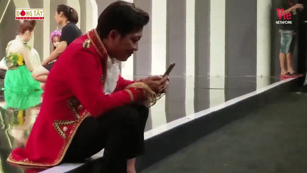 Trong đoạn clip hậu trường "7 nụ cười xuân", Trường Giang có vẻ khá mệt mỏi, buồn hiu ngồi nghịch vương miện một mình do lịch ghi hình căng thẳng nhưng khi được nói chuyện qua điện thoại với vợ con, nam diễn viên hài dường như đã lấy lại được năng lượng. Anh còn tranh thủ hôn con qua điện thoại rồi dặn: "Ba về khuya lắm" vô cùng đáng yêu.