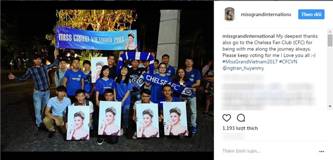 Trước đó, BTC Miss Grand Internation công bố Top 5 thí sinh được yêu thích nhất từ hệ thống bình chọn và đại diện Việt Nam đã cán đích với vị trí cao nhất. Được biết, 5 cô gái may mắn sẽ có quyền nắm giữ tài khoản Instagram của cuộc thi trong vòng 3 tiếng đồng hồ. Một trong số những bức ảnh mà Huyền My đăng tải trên trang Instagram của Miss Grand International là bức hình fan của cô cầm băng rôn cổ vũ. Đây như lời tri ân mà đại diện Việt Nam dành cho người hâm mộ khi đã luôn ủng hộ và theo dõi cô trong suốt quá trình của cuộc thi.