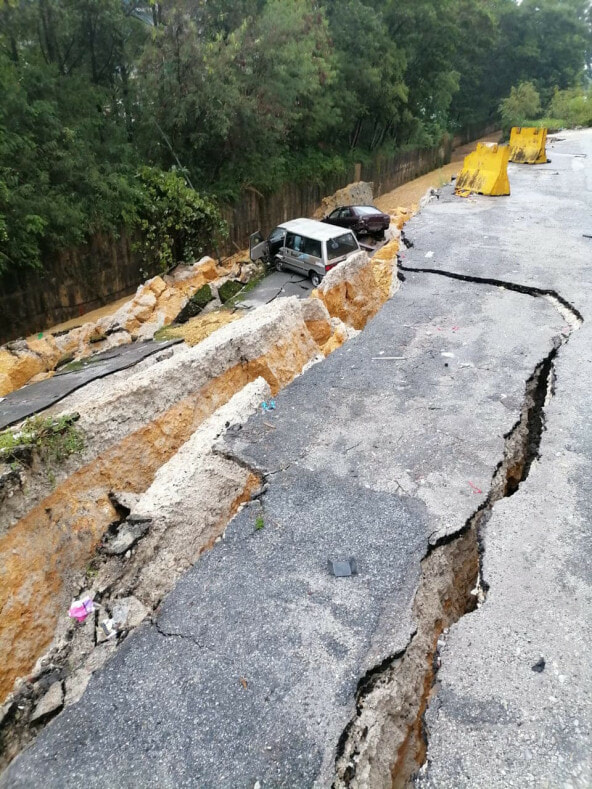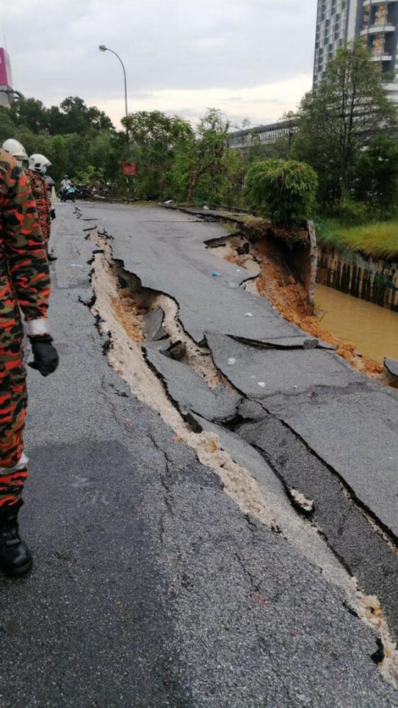 Trợ lý Giám đốc II của trạm Cứu hỏa và Cứu hộ Serdang Saharudin Abdul Razak cho biết mưa lớn đã khiến cống bị vỡ và một bên đường rơi xuống ở độ cao từ 5 đến 6 mét.