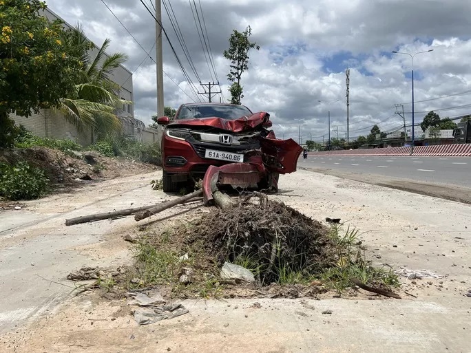 Khi qua khỏi ngã tư 550 (phường Tân Đông Hiệp, TP Dĩ An) thì tông vào đuôi xe container đang dừng phía trước, sau đó tài xế lùi xe lại rồi lao lên vỉa hè tông gãy cây xanh.