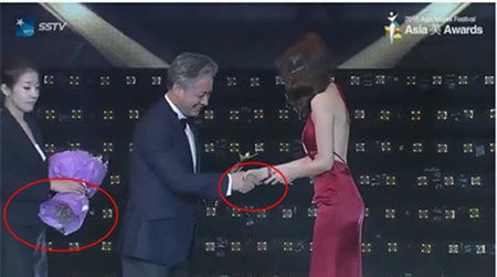 Trang cá nhân Tạ Kim Anh chia sẻ: "Clip thực ra là ghi lại hình ảnh Ngọc Trinh vào vai người nhận giải. Người dắt Ngọc Trinh lên nhận giải là Bê Trần - người Việt Nam không phải Hàn Quốc.