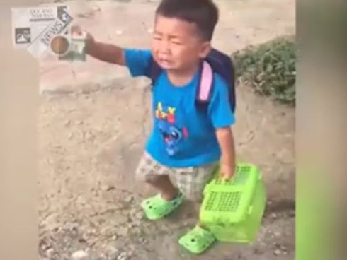 Trong cảm xúc buồn bã nước mắt tràn trề song cậu vẫn rất ngoan ngoãn cầm lấy giỏ đồ mẹ đưa cho hùng dũng đi vào trường.