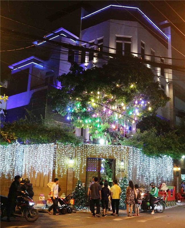 Tối 19.12, từng dòng người lần lượt xếp hàng vào tham quan, chụp ảnh tại khu vườn Giáng sinh trong biệt thự 3 triệu USD của Đàm Vĩnh Hưng ở đường Thất Sơn, Quận 10, TP.HCM. Theo bảo vệ nơi đây, tuy 19h mới mở cửa đón khách nhưng từ 17h đã có nhiều người hiếu kỳ đến chờ. Căn biệt thự của "Ông hoàng việt Việt" ngày thường gây chú ý nhờ vẻ ngoài lộng lẫy, nay lại lung linh hơn với đèn trang trí và ánh sáng phủ khắp. Như thông lệ, vào mỗi dịp Giáng sinh, dù bận rộn với công việc, giọng ca "Bài thánh ca buồn" đều dành thời gian trang hoàng nhà cửa để mọi người đến chiêm ngưỡng.