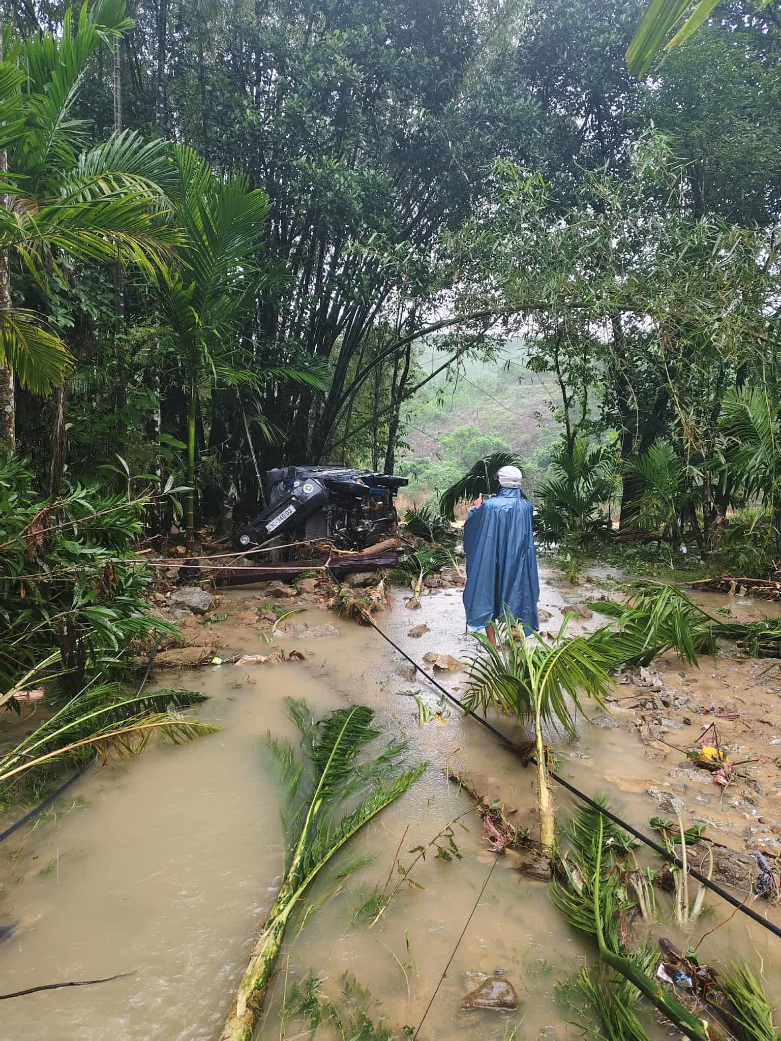 Clip được ghi lại vào khoảng 1h ngày 18/11 vừa qua. Theo lời anh Trung, thời điểm đó nhà anh đang ngủ say thì một số người thức giấc sớm, phát hiện nước từ trên núi đổ về, dâng rất nhanh. "Hàng xóm chạy đi từng nhà, đập cửa gọi mọi người chạy lũ. Nhờ vậy gia đình tôi mới kịp bế con chạy lên đồi. Khi chúng tôi nhìn lại thì thấy nước đã tràn ngập, cuốn phăng mọi thứ”, anh Trung kể.